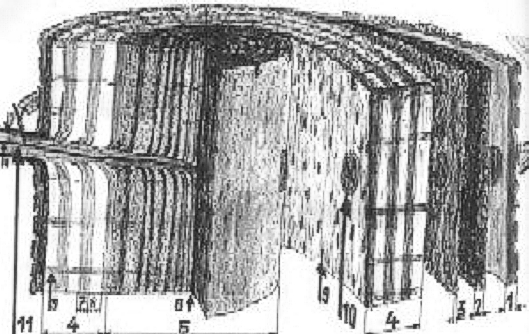 Mit jedem Jahresring wird der Baum dicker. Gleichzeitig müssen deshalb die Markstrahlen mitwachsen, damit sie  auch weiterhin vom Bast befüllt werden können. Sie haben eine eher kastenartige Form. Die Speicherzelle des jungen Baumes, als er noch so dünn wie ein Ast war, war die Markröhre (8). Von dort aus hat er die ersten  „primären“ Markstrahlen gebildet. Da sie strahlenförmig auseinander gehen, wird mit jedem neuen Jahresring der Abstand zwischen den äußeren Enden größer. Das Baumaterial muss also einen immer größeren Weg zurücklegen, um das Kambium auch in der Mitte zu erreichen. Deshalb setzt er irgendwann dort neue „sekundäre“ Markstrahlen an, die vom Bast mit versorgt werden.